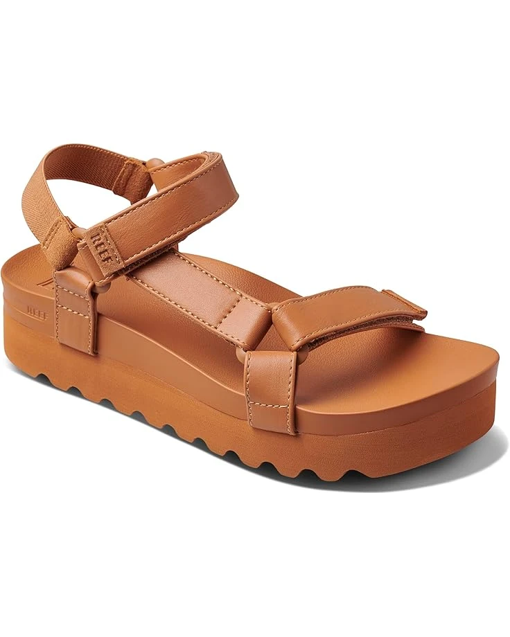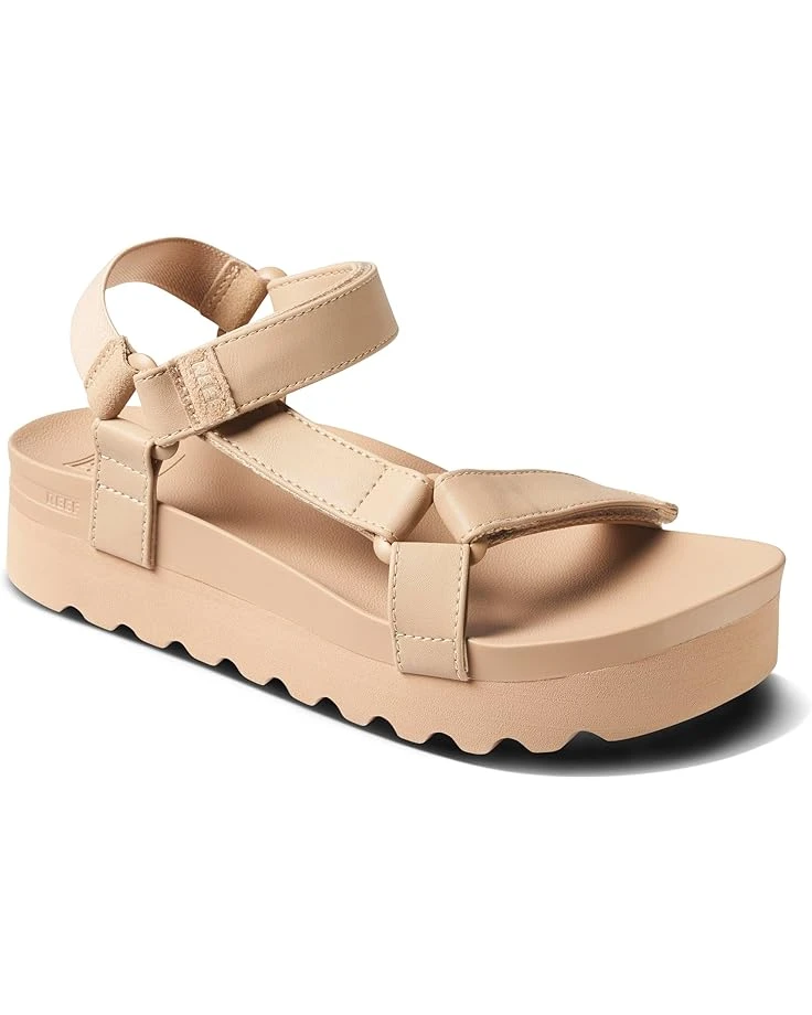 - Let’s be a little cagey, as in straps that hug your foot all the way around, including a comfy elastic backstrap. The Reef® Cushion Rem Hi features our signature cushiony, bouncy footbed, with ultimate arch support, heel cupping, and a genuine cork topsheet. Best of all, these sandal’s straps are made from 100% post-consumer plastic material, so you can feel good about them in every way. A layered, on-trend sole takes these platform sandals up a notch, so to speak. Cute, comfy, and up for anything.