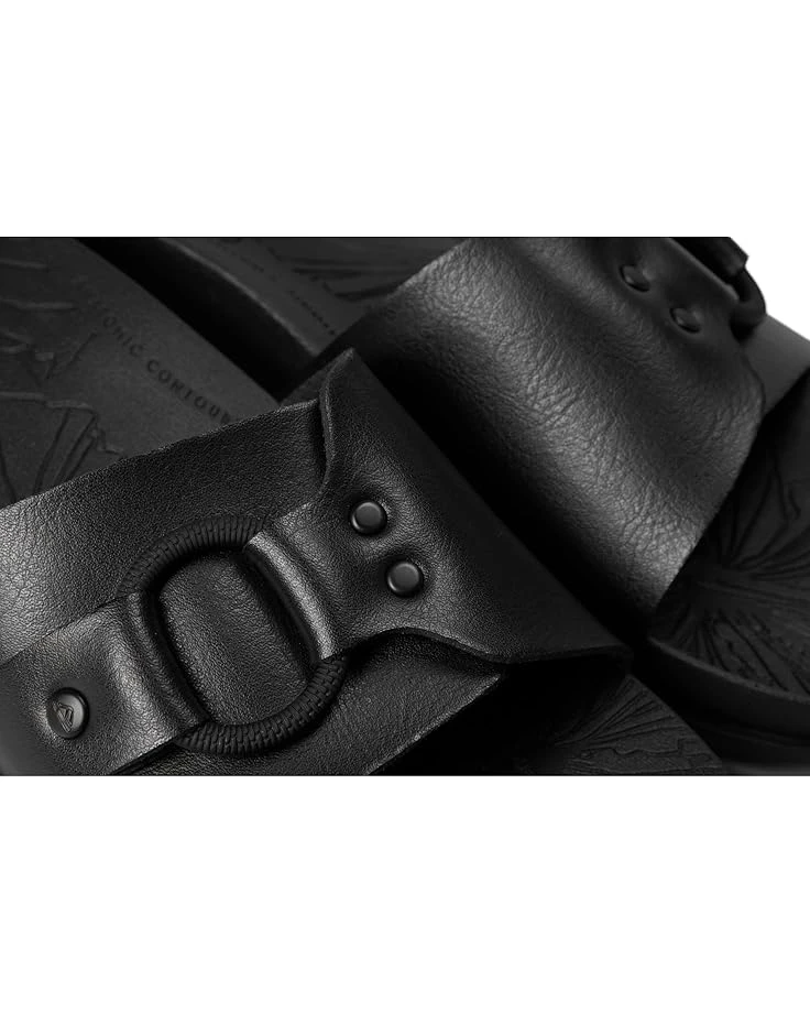 - Chic, comfy, and ready to travel. An elevated take on a classic slide, the Reef® Cushion Soho Cruz is perfect for dressing up or styling down on your next sunny outing. It’s crafted with soft vegan leather, a rubber outsole, and generous arch support to keep you comfortable from vacation to city exploration. The Cushion Soho Cruz is ready for any adventure. Soft and supportive cushion with a rebound footbed with a hibiscus flower footbed design deboss. Super soft unlined PVC Free vegan leather slide with faux raffia molded buckle and recycled hardware detail.