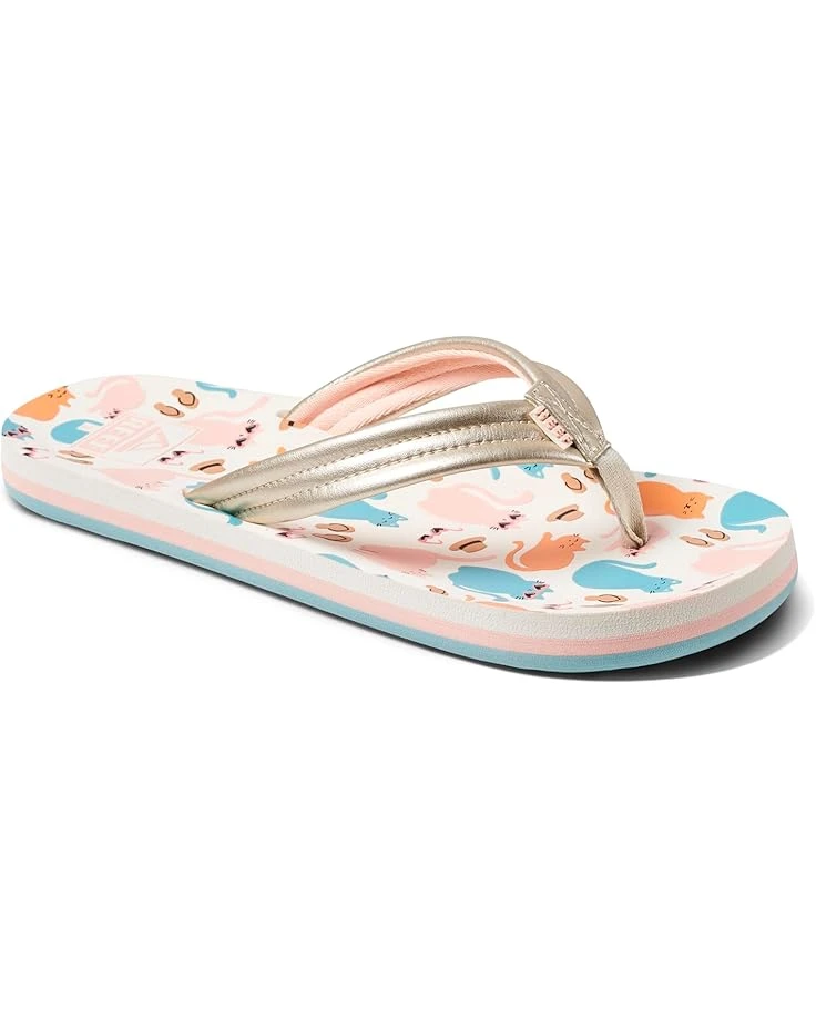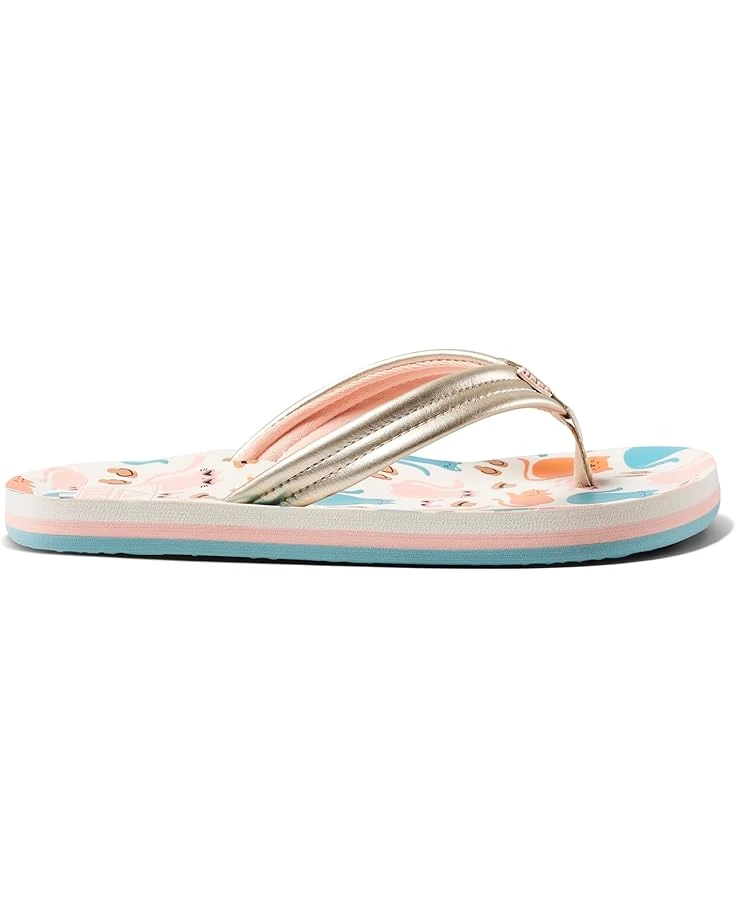 - Bring an effortless charm to your kiddo’s style by opting for the Reef® Kids Kids Ahi Flip Flops. The slip-on footwear features water-friendly synthetic padded straps, recycled PET soft webbing liner, and printed contoured EVA footbed for extra comfort.