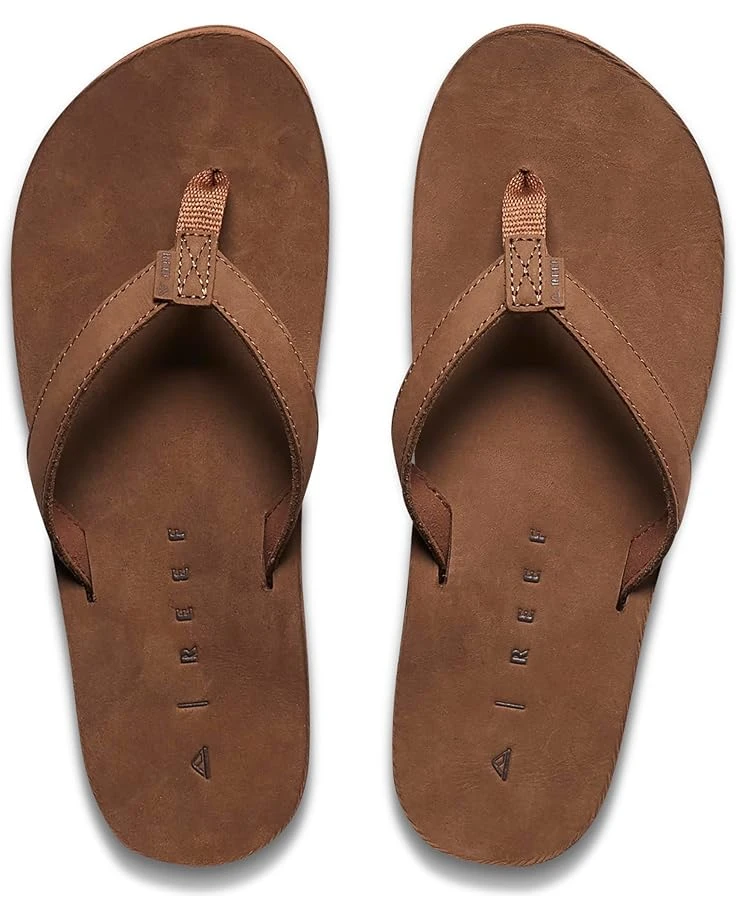 - The Reef® Reef Solana Leather slippers aren’t your basic leather flip flops – these ones are built with heart. These slippers are timeless, comfortable, and sustainable. The upper of these flip flops are crafted with leather that is sourced from Gold and Silver Rated Tanneries by the Leather Working Group while the rubber insole and nylon lining offer all-day comfort. These leather flip-flops feature a toe post made from 100% recycled PET derived from post-consumer bottles. Get ready for the beach or a casual stroll wearing these slide slippers.
